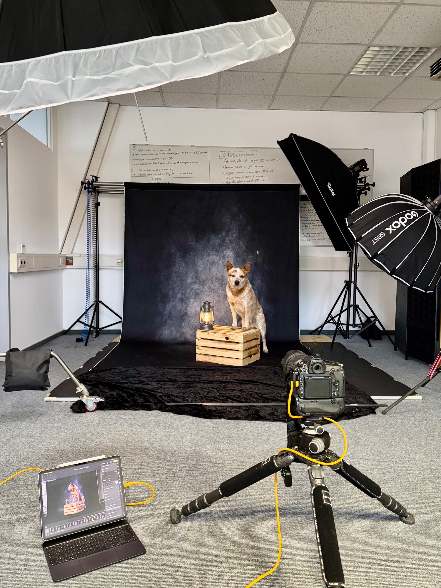 In unserem professionellen Fotostudio setze ich Sie und Ihren Liebling mit viel Liebe zum Detail in Szene. Das Spiel mit verschiedenen Hintergründen, Requisiten und ganz besonderer Lichtstimmung ermöglich das perfekte Foto und ein unvergessliches Erlebnis. Professionelles Equipment mit 4 hochwertigen Studioblitzen, bis zu 1,80 Meter große Softboxen und Tether-Bildschrim, auf dem Sie Ihr Foto direkt nach der Aufnahme sehe können, gehören zu unserem Standart.